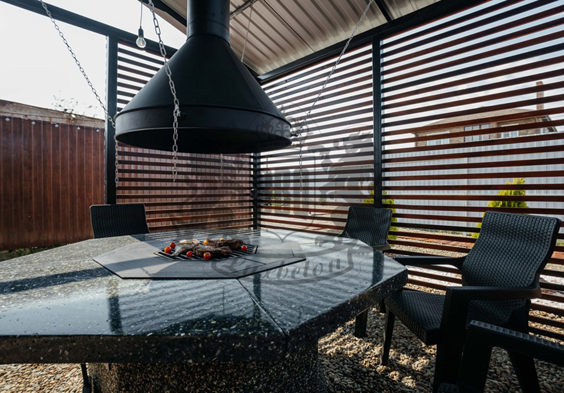 Наши столы для барбекю продуманы до мелочей, чтобы процесс приготовления был комфортным. В комплект входит решетка. В нашем магазине можно приобрести дымосборный купол для расширения стандартной комплектации.